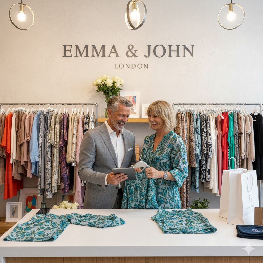 At Emma & John London, everything begins with a shared passion for fashion. Both Emma and John studied Fashion Design and Business Management in London, where their love for creativity and craftsmanship first took shape. After years of working in the fashion industry, they met, fell in love, and decided to combine their experience and vision into something of their own, a boutique that truly reflects who they are.